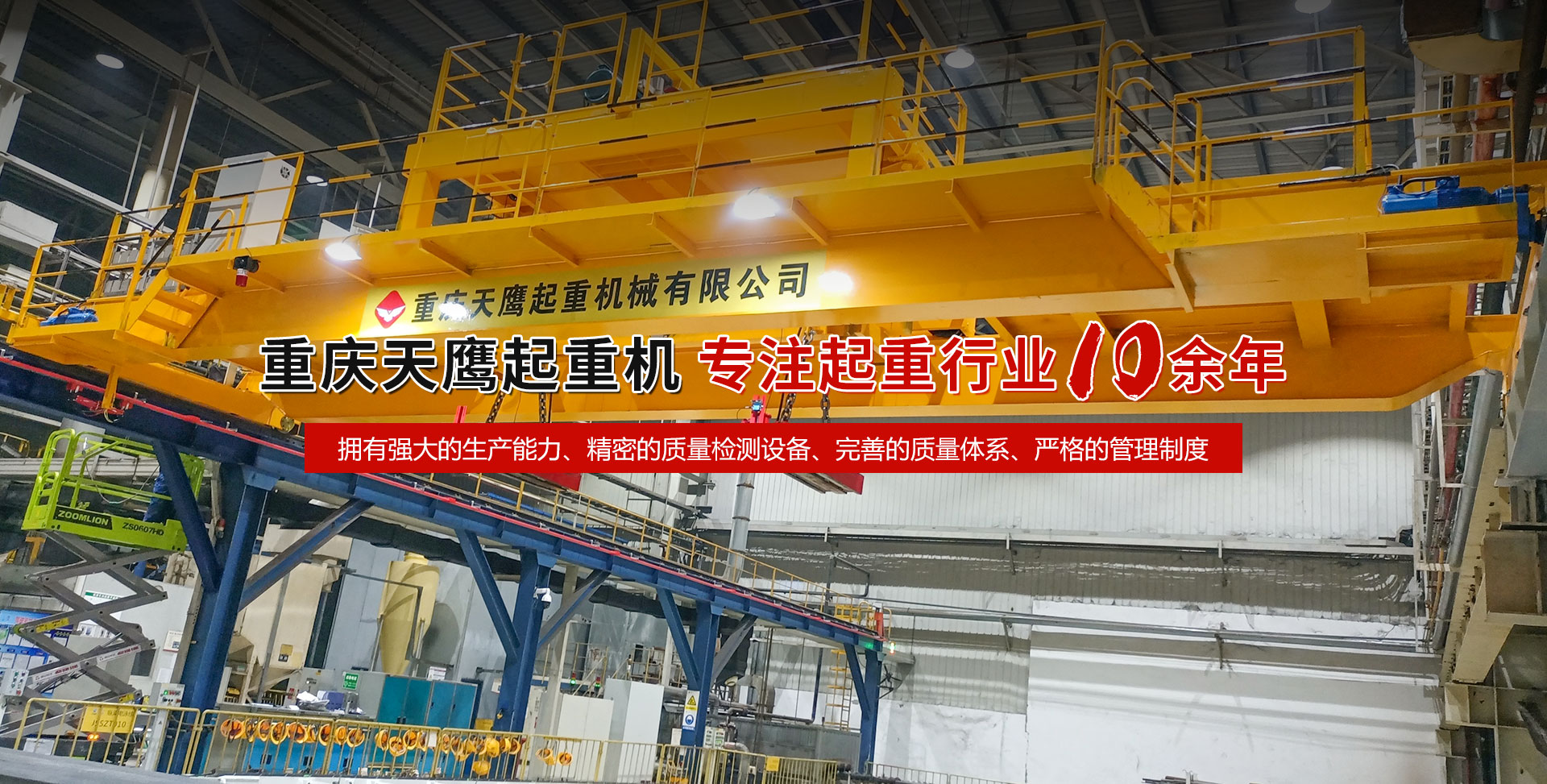 重慶天鷹起重機(jī)械有限公司成立于2014年,主營(yíng)起重機(jī)的銷售、安裝和維護(hù)等相關(guān)服務(wù)。中國(guó)重型機(jī)械工業(yè)協(xié)會(huì)員單位、為中國(guó)工程機(jī)械工業(yè)協(xié)會(huì)工程機(jī)械維修分會(huì)會(huì)員單位及西南地區(qū)起重機(jī)械定點(diǎn)安裝維修單位。具有國(guó)家質(zhì)量監(jiān)督檢疫總局頒發(fā)的特種設(shè)備安裝維修改造質(zhì)格證書(shū)。并率先通過(guò)了IS09001-2000質(zhì)量體系認(rèn)證。 公司注冊(cè)資金3000萬(wàn)元;廠房面積2萬(wàn)平方米;各種生產(chǎn)檢測(cè)設(shè)備50臺(tái)套,公司技術(shù)力量雄厚,聘請(qǐng)了國(guó)內(nèi)知名起重機(jī)專家、工程技術(shù)人員擔(dān)當(dāng)項(xiàng)目經(jīng)理、技術(shù)總工程師及顧問(wèn)。現(xiàn)擁有員工100多人,其中工程技術(shù)人員12人。 主導(dǎo)產(chǎn)品為各類橋、門(mén)式起重機(jī)及輕小型起重設(shè)備,具備生產(chǎn)起重量200t及以下通用橋、門(mén)式起重機(jī)的能力,尤其在200t以下起重機(jī)產(chǎn)品上具備較強(qiáng)的市場(chǎng)競(jìng)爭(zhēng)力,為許多行業(yè)設(shè)計(jì)制造了技術(shù)含量高、技術(shù)性強(qiáng)的起重設(shè)備,許多產(chǎn)品在原設(shè)計(jì)標(biāo)準(zhǔn)上進(jìn)行了較大的改進(jìn)、優(yōu)化和創(chuàng)新;其中NH型系列電動(dòng)葫蘆、HD型電動(dòng)單梁處于國(guó)內(nèi)高水平..... 好的產(chǎn)品品質(zhì)需要由較高的裝備水平來(lái)保證,公司購(gòu)買(mǎi)了“大型數(shù)控落地鏜”、“數(shù)控切割機(jī)床”、“自調(diào)式焊接滾輪機(jī)”、“數(shù)顯液壓板料折彎?rùn)C(jī)”、“超大型數(shù)控臥式車床”、“數(shù)控液壓水平下調(diào)式三輥卷板機(jī)”、“單柱移動(dòng)式立式車床”“擁有用于單梁生產(chǎn)的全國(guó)一條拋丸噴漆烘干線、葫蘆噴漆烘干線和全國(guó)較大的100T葫蘆試驗(yàn)臺(tái)和檢測(cè)中心”等各種先進(jìn)的加工設(shè)備,新建廠房面積近2萬(wàn)平方米。 質(zhì)量是企業(yè)的生命,天鷹公司依據(jù)“ISO 9001國(guó)際質(zhì)量管理體系”標(biāo)準(zhǔn),制定并完善了公司的質(zhì)量管理體制。堅(jiān)持質(zhì)量體系的內(nèi)審和外審,將質(zhì)量管理工作落實(shí)到企業(yè)生產(chǎn)經(jīng)營(yíng)的全過(guò)程?! ∧奈⑿Γ翘禚椨篮愕淖非?;天鷹的服務(wù),是您首要的選擇!因?yàn)槲覀儓?jiān)信:“誠(chéng)信是本、質(zhì)量鑄就品牌”。為您服務(wù)是我們的榮耀,勤奮而進(jìn)取的天鷹人,時(shí)刻期盼著您的到來(lái)。